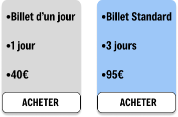 Billet standard : 95 € pour un pass de 3 jours.